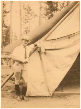 My Grandfather was a very fashion-conscious person, as evident from a 1927 photograph that I showed the lady on my I-Phone, shown above. He was at Yellowstone National Park in 1927, beside his tent with his riding boots on a camping expedition.